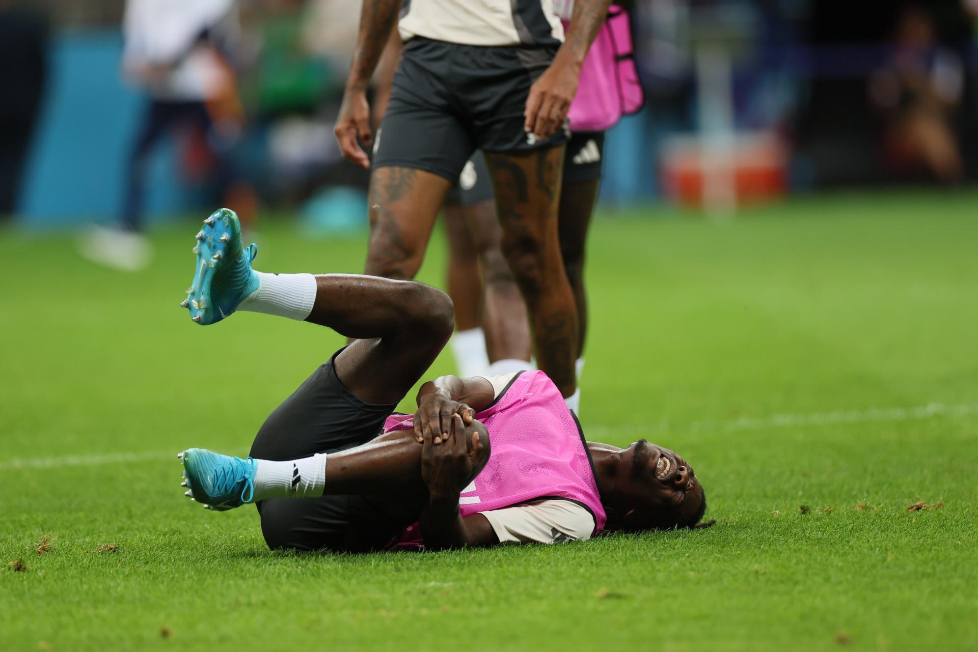 Camavinga, al que se escuchó gritar tras el golpe, quedó tendido algunos instantes sobre el césped del recinto en el que este miércoles se jugará la final.
