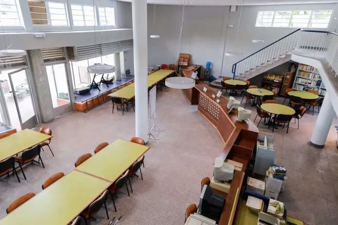 De igual manera, se realizó la intervención completa del techo, las paredes y el piso. Además, se recuperaron 18 luminarias patrimoniales y se colocó iluminación en las vitrinas, donde se exhiben máquinas de escribir antiguas y otros insumos que eran utilizados en la Escuela de Comunicación Social.