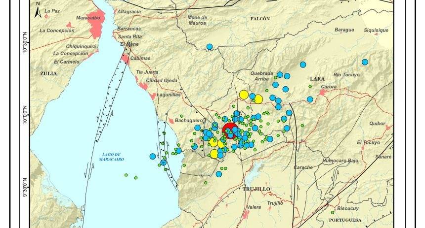 La Fundación Venezolana de Investigaciones Sismológicas (Funvisis) publicó el mapa de sismicidad acumulada correspondiente al enjambre sísmico iniciado el 24 de septiembre, a las 5:50 de la tarde.