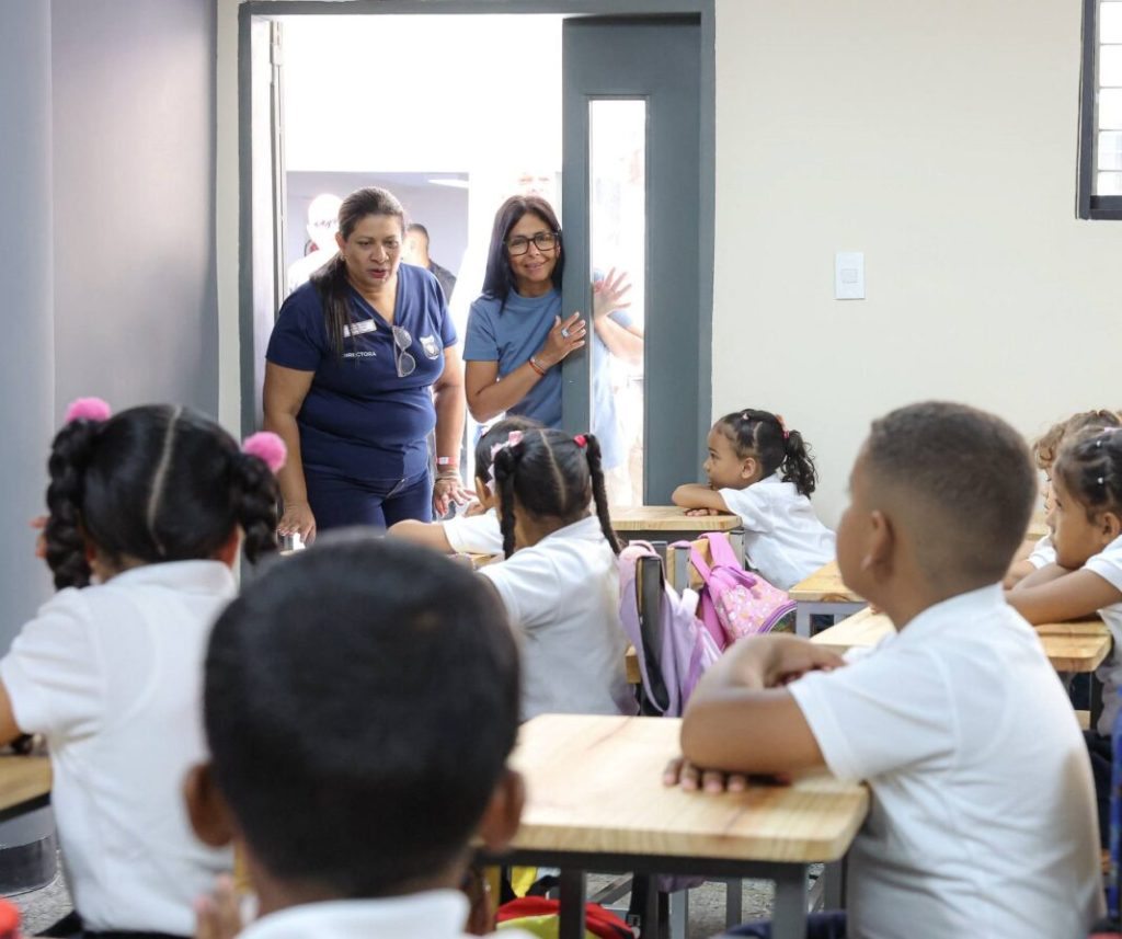 La presidenta (E) de la República, Delcy Rodríguez, entregó este lunes 20 de abril completamente rehabilitada la Unidad Educativa Nacional «Dr. José de Jesús Arocha» en Petare.